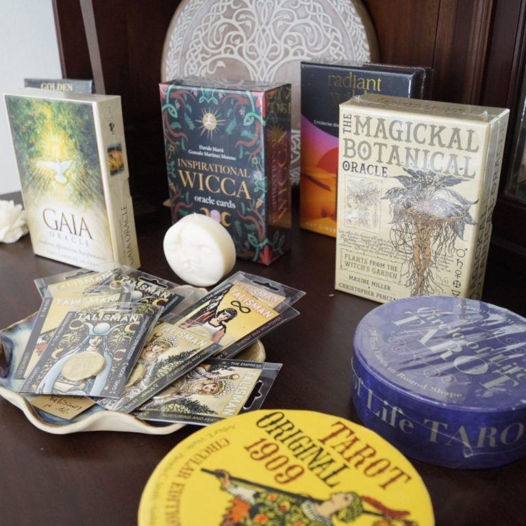 Außerdem näht eine Freundin wunderschöne Taschen und Beutel für Tarot- und Orakelkarten, sowie Tücher, die auch für einen Altar ideal sind und deinen heiligen Raum zu etwas ganz besonderem machen